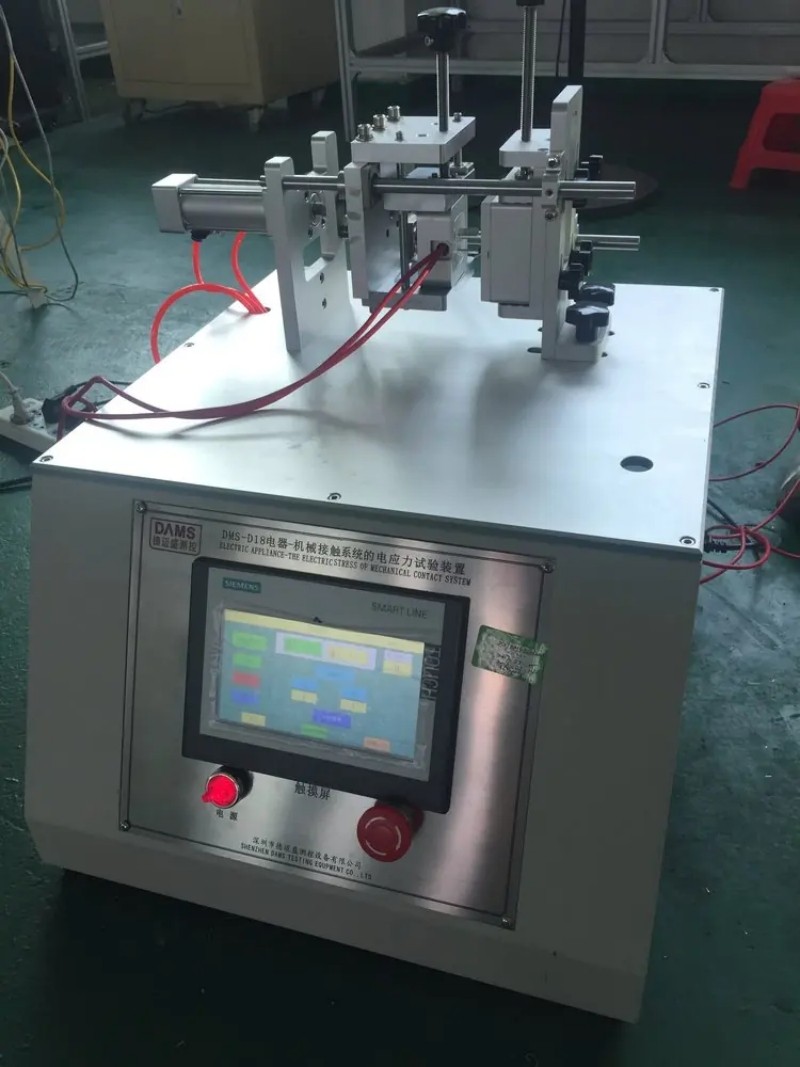 1、 根據(jù)標(biāo)準(zhǔn)YY 1057-2016和GB9706.1-2020的測(cè)試要求而設(shè)計(jì)制造的專門設(shè)備,適用于醫(yī)用腳踏開關(guān)的壽命試驗(yàn)。設(shè)備采用鋁合金機(jī)架,不銹鋼封板,由電極驅(qū)動(dòng),觸摸屏顯示及設(shè)置測(cè)試參數(shù),PLC控制??深A(yù)設(shè)試驗(yàn)次數(shù)、試驗(yàn)速率。