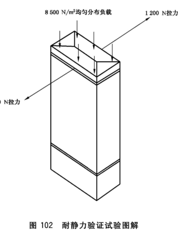 試驗2:應(yīng)在外殼前部和后部的頂角依次施加1200N的力,時間5min,試樣在設(shè)備上可旋轉(zhuǎn)90°,對側(cè)面亦可施加推力,滿足產(chǎn)品4個側(cè)面都需測試的要求;