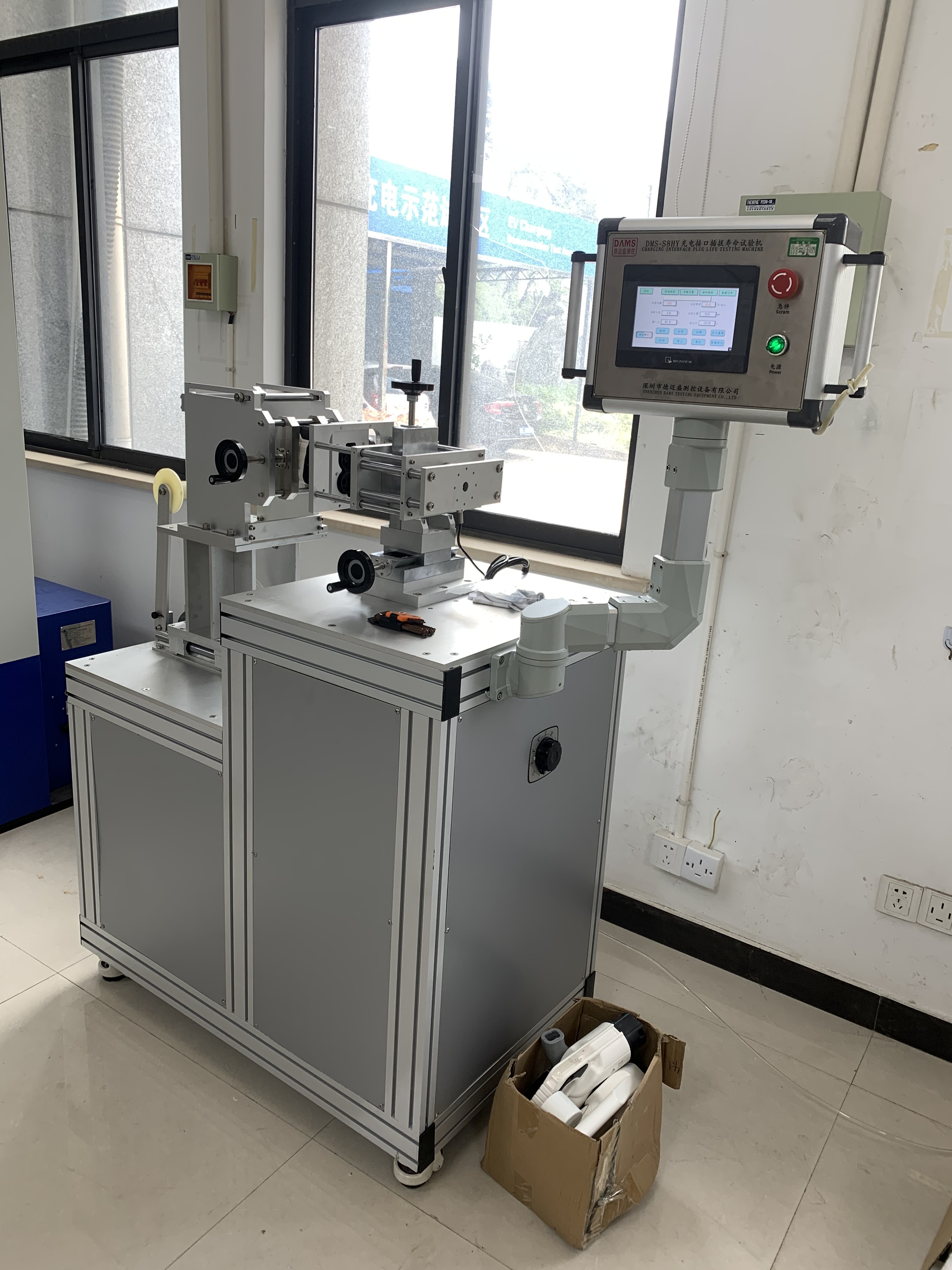 能夾持充電槍,自動(dòng)把充電槍浸泡在溶液或者泥漿里等待一段時(shí)間后,自動(dòng)拿出來插入充電槍座,重復(fù)該動(dòng)作,模擬充電槍在戶外的插拔壽命。